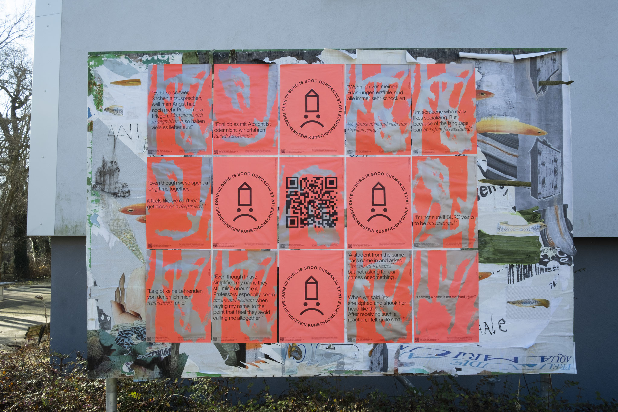 Im Wintersemester 23/24 haben wir uns mit dem Thema „Weltoffene Hochschule“ an der Burg beschäftigt. Da wir aus eigener Erfahrung und aus Gesprächen wissen, dass nicht-deutsche Studierende an unserer Hochschule mit struktureller Diskriminierung, wie offenes diskriminierendes Verhalten und Ausschluss von der Lehre und sozialen Aspekten der Bildung, konfrontiert sind, beschlossen wir, diesen unterrepräsentierten Stimmen eine Plattform zu geben. In einer wöchentlichen Gesprächsreihe erfuhren wir von den Erfahrungen und Perspektiven internationaler Studierender. Aus diesen beunruhigenden Gesprächen wählten wir Zitate aus und veröffentlichten sie in einer Plakatkampagne und auf unserer Website.