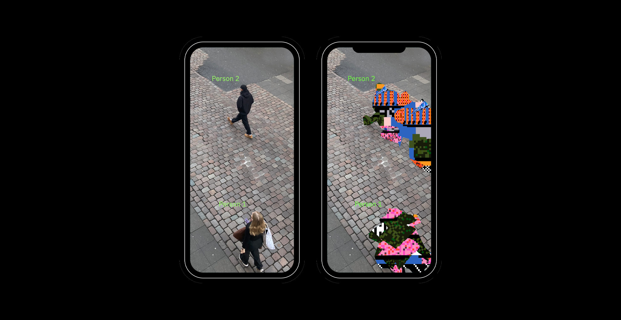Die Studierenden rücken öffentliche Plätze und Räume ins Zentrum ihrer Arbeit. Sie erkunden die Gegensätze von Konstanz und Veränderung – zentrale Parameter des urbanen Raums. Mit einer interaktiven Intervention, die per Kamera-Tracking Bewegungen in grafische Muster übersetzt, verändern sie die Perspektive der Passantinnen und Beobachterinnen. So wird sichtbar, wo Dynamik entsteht und wo der Raum zur Ruhe kommt.