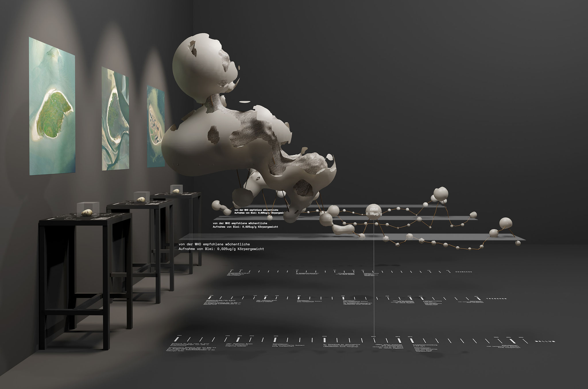 Auf Grundlage einer akribischen Recherche entwickelt der Studierende eine Visualisierung, die die Problematik der Schwermetallverschmutzung in Küstengebieten auf mehreren Ebenen – akustisch, visuell und räumlich – erfahrbar macht. Die daraus entstandene Installation nutzt gekonnt Mittel des Storytellings, um die Betrachterinnen in den Lebensraum von Möwen und ihren Brutstätten eintauchen zu lassen. Mittels Augmented Reality können Besucherinnen die Auswirkungen der Umweltbelastung auf die faszinierenden Seevögel interaktiv erkunden