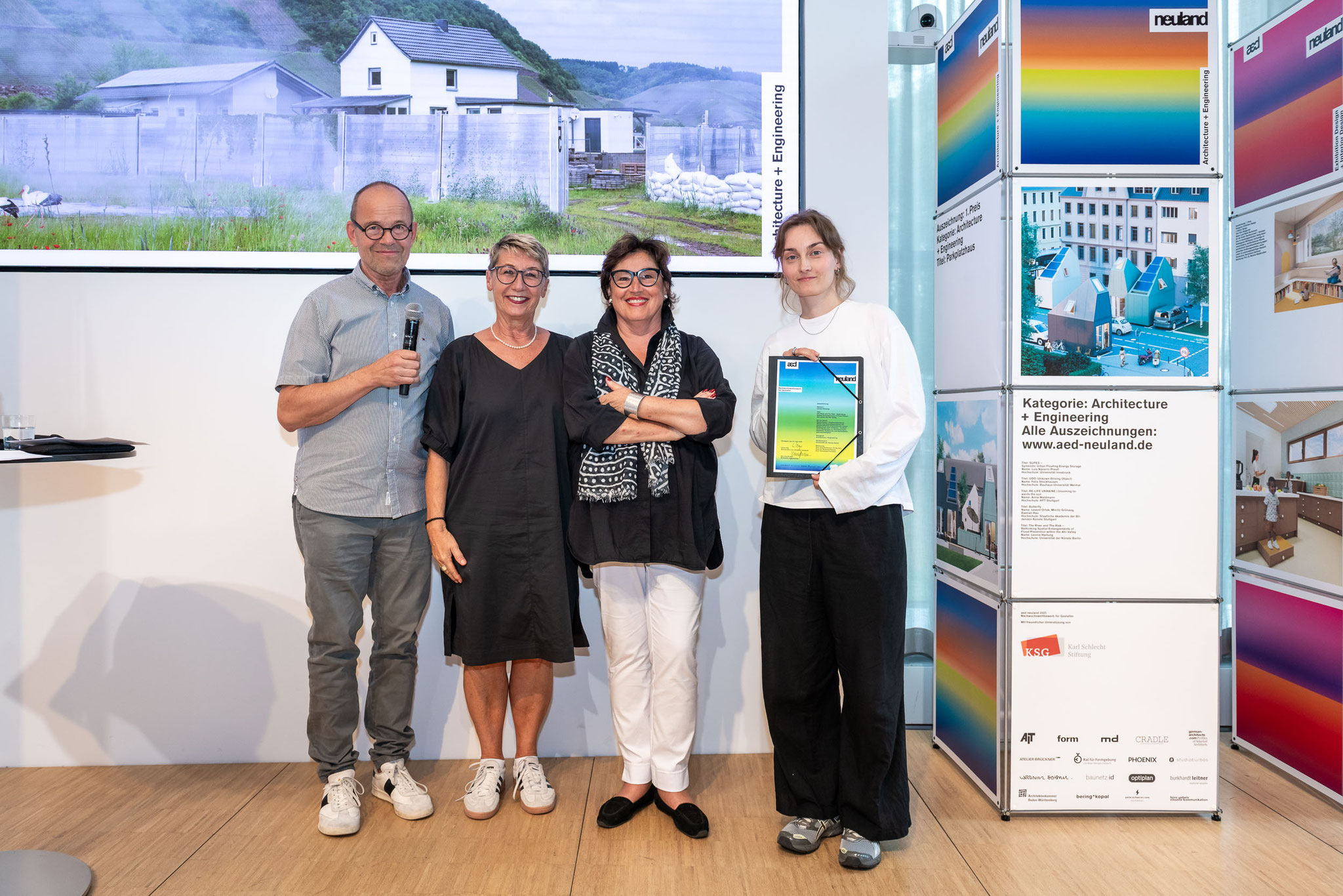 Das Projekt befasst sich mit Möglichkeiten zum Hochwasserschutz, insbesondere vor dem Hintergrund der Katastrophe im Ahrtal im Jahr 2021. Er nimmt den Betrachter mit auf eine Zeitreise durch die nächsten 100 Jahre und zeigt verschiedene Entwicklungsszenarien auf, die durch die massiven Auswirkungen der Klimaveränderung neu gedacht werden müssen. Gezeigt wird eine optimistische und zugleich poetische Vision, wie in Zukunft mit derartigen Szenarien umgegangen werden kann.